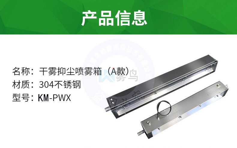 干霧箱采用304不銹鋼箱體,內部采用水路、氣路分流裝置,噴霧更均勻。箱體內可設置加熱保溫裝置。每個箱體安裝4-8個干霧噴嘴。