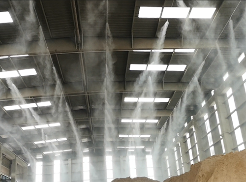 在石灰石熟料堆棚高壓噴霧抑塵項目中,我們采用1套高壓噴霧除塵設備,共安裝了280個霧化噴嘴。實現高空布局霧化噴嘴,整體車間噴霧抑塵。水源采用生產設備冷卻循環水,耗水、耗電量都較小,且便于操作,可以遠程控制,有效的抑制了粉塵,有效的減少了粉塵爆炸的產生,給員工的工作環境進行了大大的改善,也減少了空氣污染。www.ounan.cc